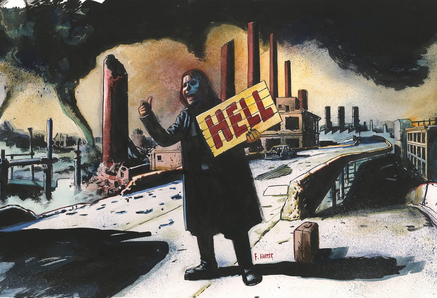 I enjoy making art. Sometimes it’s on the darker side, sometimes it’s not. I guess it’s up to the viewer. I met a woman from a northern country, like Norway or something many years ago. She had worked on the Simpsons animations for a while. She showed me her paintings. They looked very Simpsonesque in style. One image was a woman in a blue dress with a woman’s high heeled shoe imbedded in the crotch area. I immediately thought this was coming from some traumatic experience in her life. I asked her about it and she said it was something she just found funny. It was a strong image but I found it disturbing. I should have followed up about this humor angle. So Sometimes I let my art go dark. I find it cathartic sometimes. Art is like that.